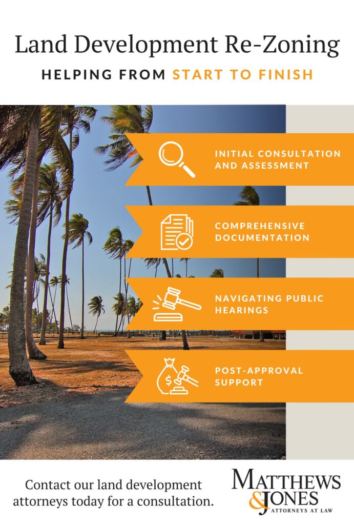 Navigating the complexities of land development re-zoning can be a challenging process, but we are here to help. At Matthews & Jones, LLP, our team possesses deep expertise in real estate law and is committed to guiding you through every step, ensuring that your project meets all necessary regulations and objectives with confidence.