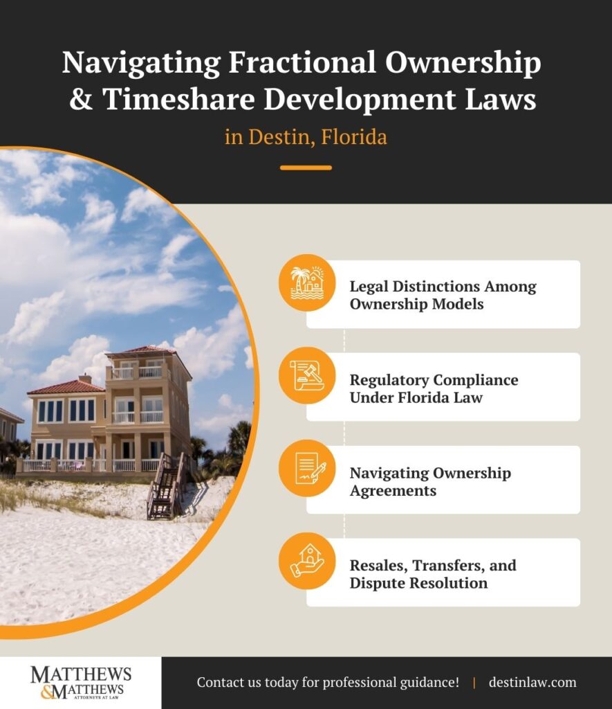 Understanding the legal aspects of fractional ownership and timeshare development in Destin is vital for a successful investment. Whether you’re a buyer or a developer, partnering with Matthews & Matthews, LLP ensures that your interests are protected and your transactions are compliant with Florida laws. Contact us today for professional guidance tailored to your specific needs.